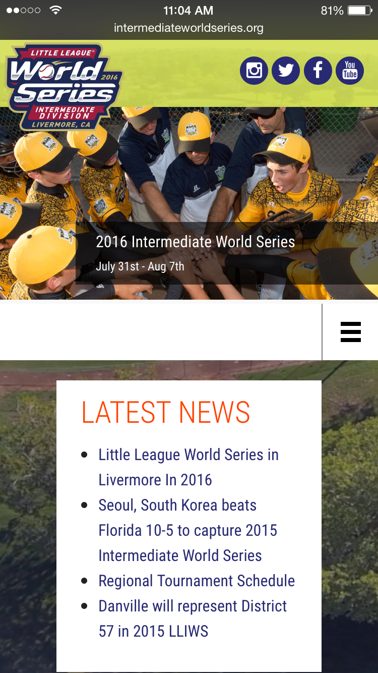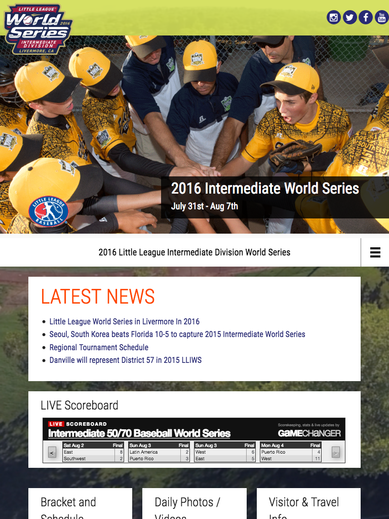 In 2013 Sky1 worked with Five Star Networking, Inc. and Todd Reddick to design and develop the website for the Intermediate Division 50/70 Little League World Series event in Livermore, CA.