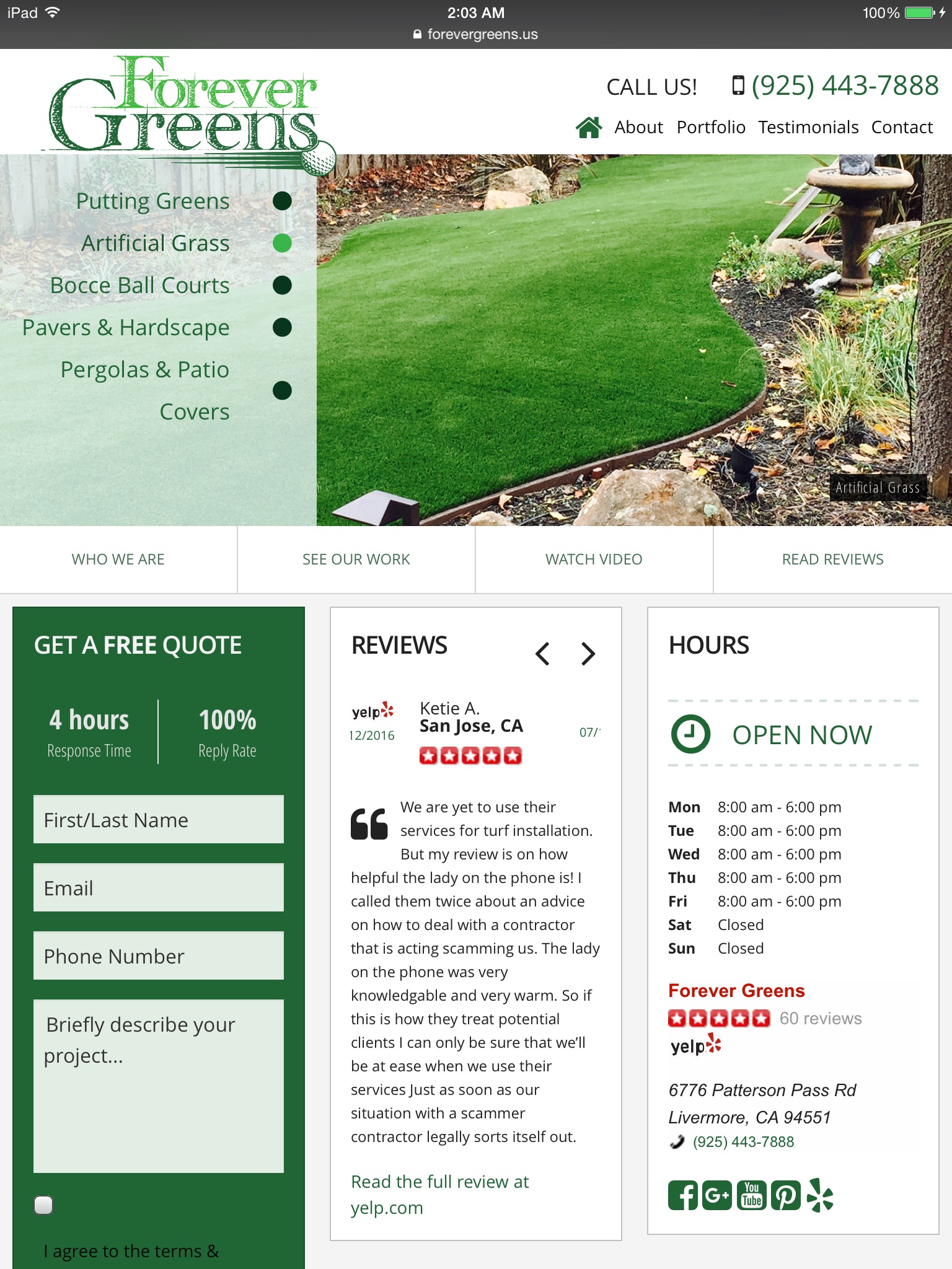 Designed and developed a custom portfolio website for a five star rated company on Yelp. Developed custom testimonial and portfolio management system. Forever Greens is now FG Pavers and Turf.